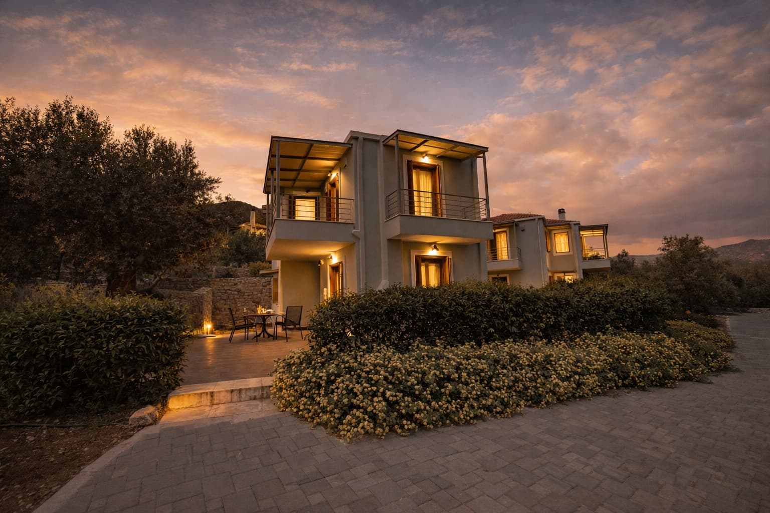 In Palaia Epidavros gelegen, bieten die Villen einen Blick auf Meer und Berge — inmitten einer Landschaft aus Licht und uralten Olivenbäumen.