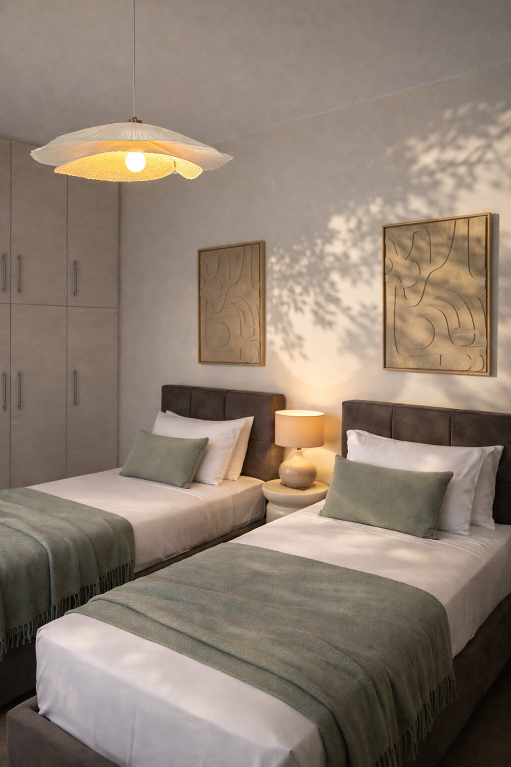 Zwei unabhängige Maisonette-Villen, gestaltet mit Blick auf Einfachheit, Komfort und Privatsphäre. Jedes Detail wurde sorgfältig bedacht, um ein Gefühl natürlicher Ruhe und Ausgewogenheit zu schaffen.